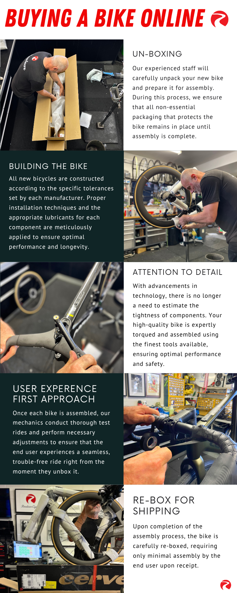 Our experienced mechanics tune, test-ride, and meticulously prepare every bike to ensure it arrives ready to ride.