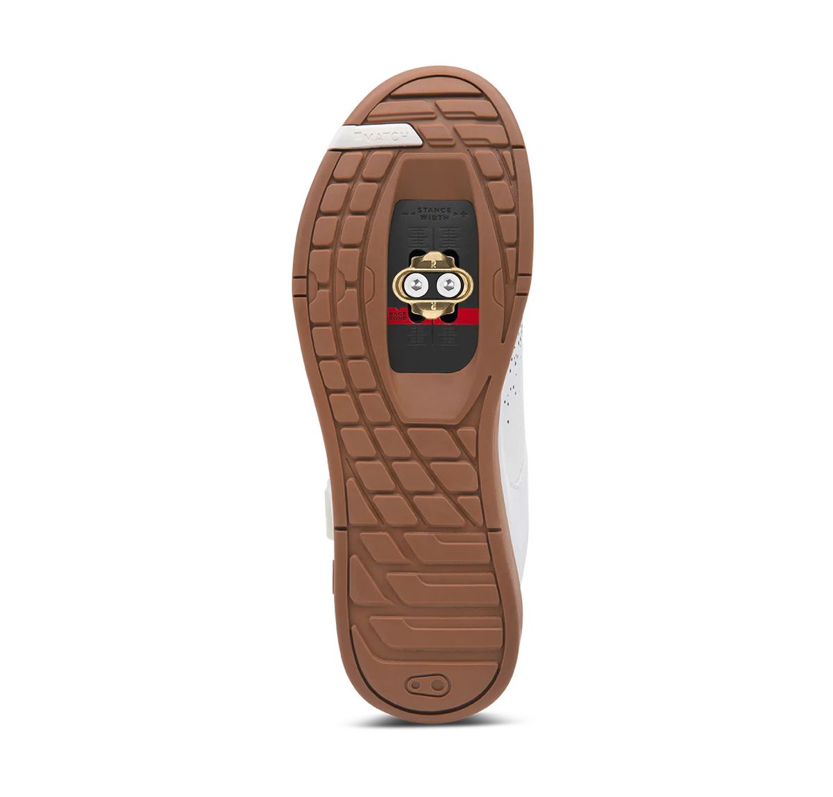 The ramped cleat box offers easy front and rear pedal entry and mud shedding. A Race Zone setback on the cleat track allows the cleat to be positioned further toward the heel for added control and stability when descending.