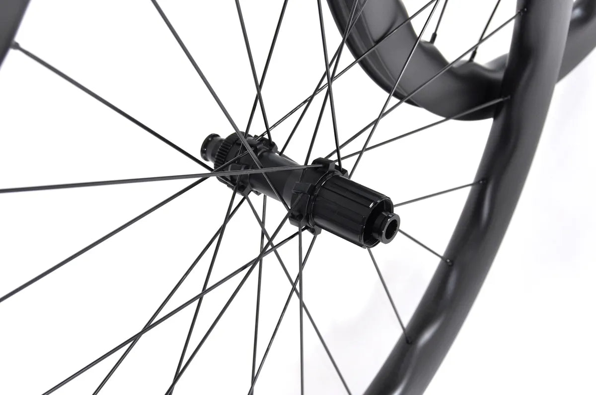 *45mm depth 700c carbon wheels for gravel bikes, total weight only 1197grams. *4.5mm width aero bladed carbon spokes, high stifness, high tensile strength, better arodynamic. *20/20 holes ratchet system disc brake hubs, weight only 275 grams. *Wider 32/34mm design specially for gravel or cyclocross bikes, lower rolling resistance, better riding comfort