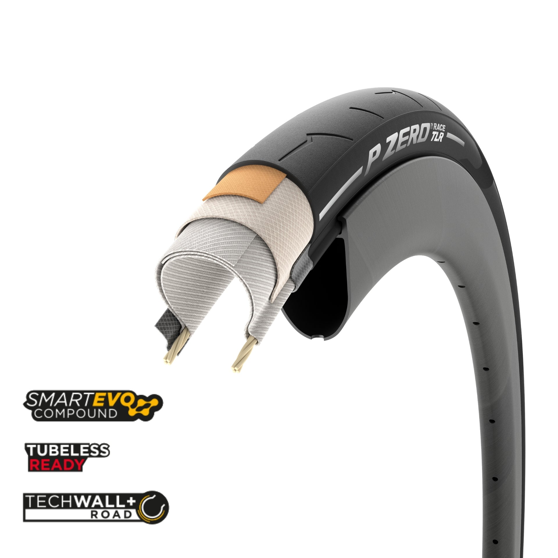 Tread: The tread pattern of P ZERO™ Race TLR is an evolution of the design of P ZERO™ Velo: several seasons of research and development on the roads of the World Tour led to a new design that enhances the behaviour of the bicycle in every weather condition.