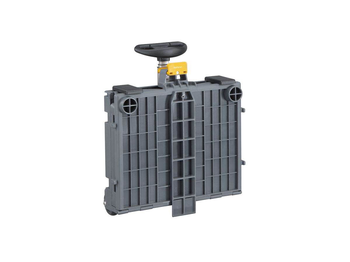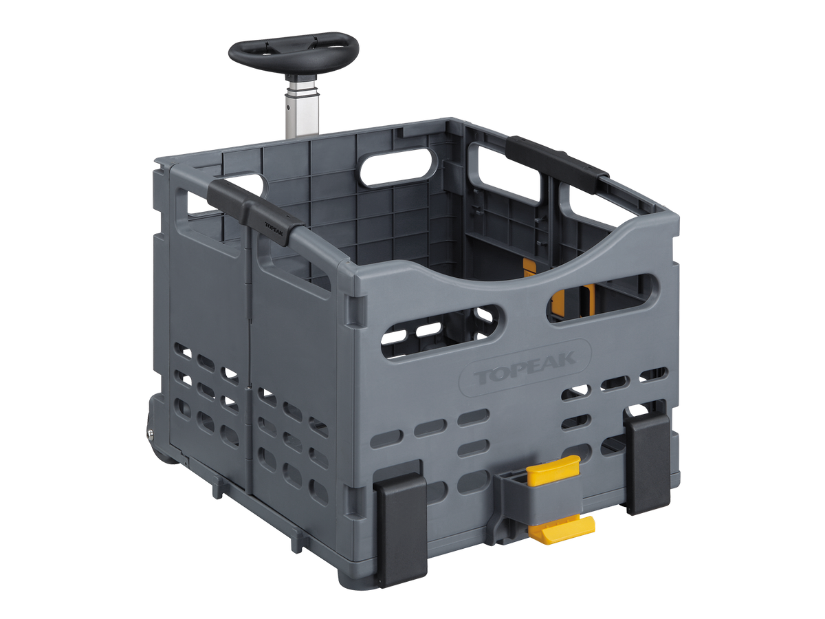 The perfect solution for around town shopping and errands. TrolleyTote features a telescopic handle and trolley wheels for easy handling at the market and the large capacity durable frame is collapsible for easy storage. The TrolleyTote is MTX QuickTrack® compatible for secure slide and click mounting and removal on all Topeak MTX racks.