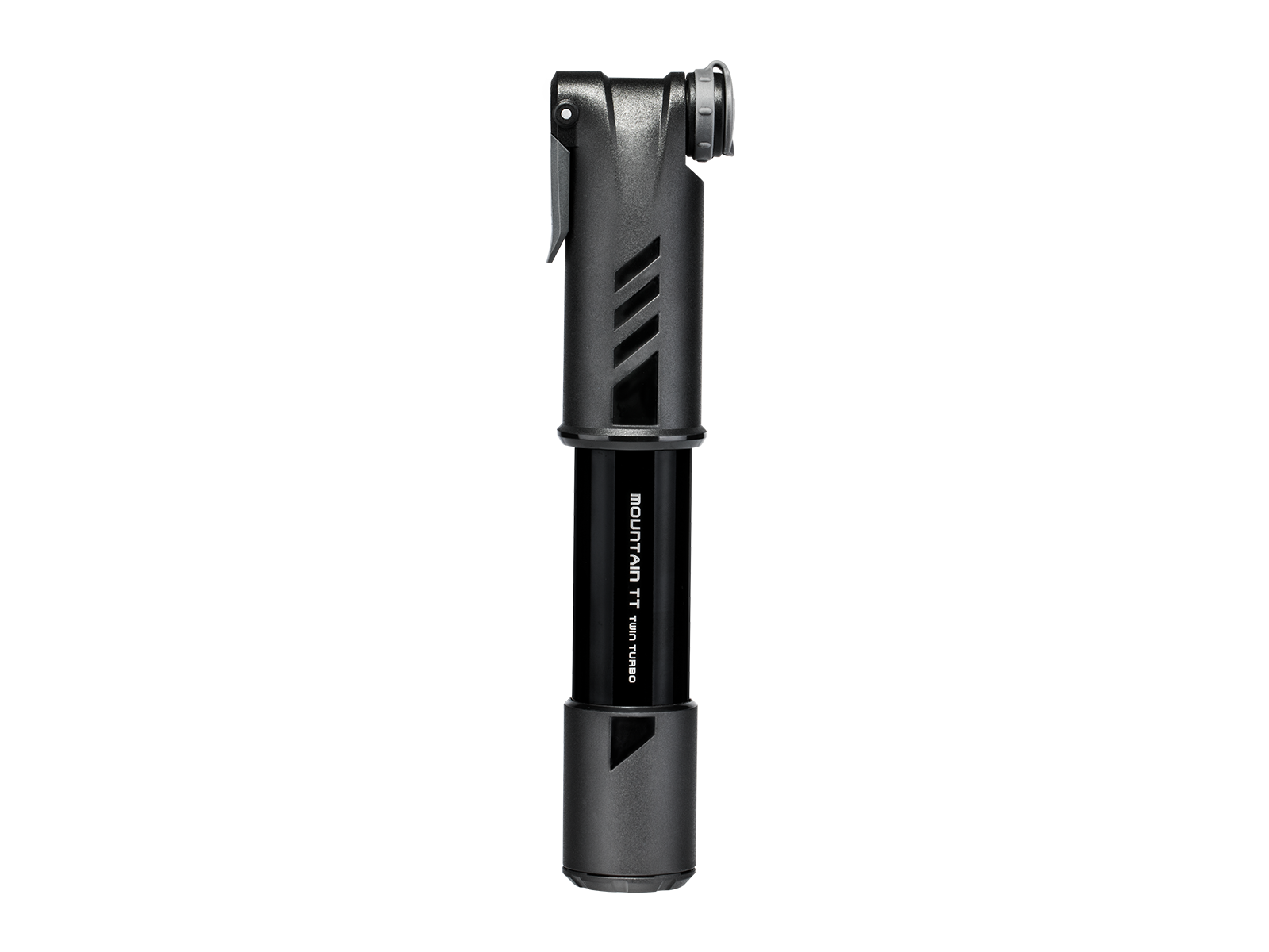 Mountain TT Twin Turbo pump fills both large volume fat bike tires and higher pressure MTB tires, as well as gravel, touring, trekking bike tires with ease. TwinTurbo technology uses both strokes to compress air to deliver high pressure output and saves time and effort. Integrated dust cap keeps pump head clean and thumb lock lever ensures air-tight seal.