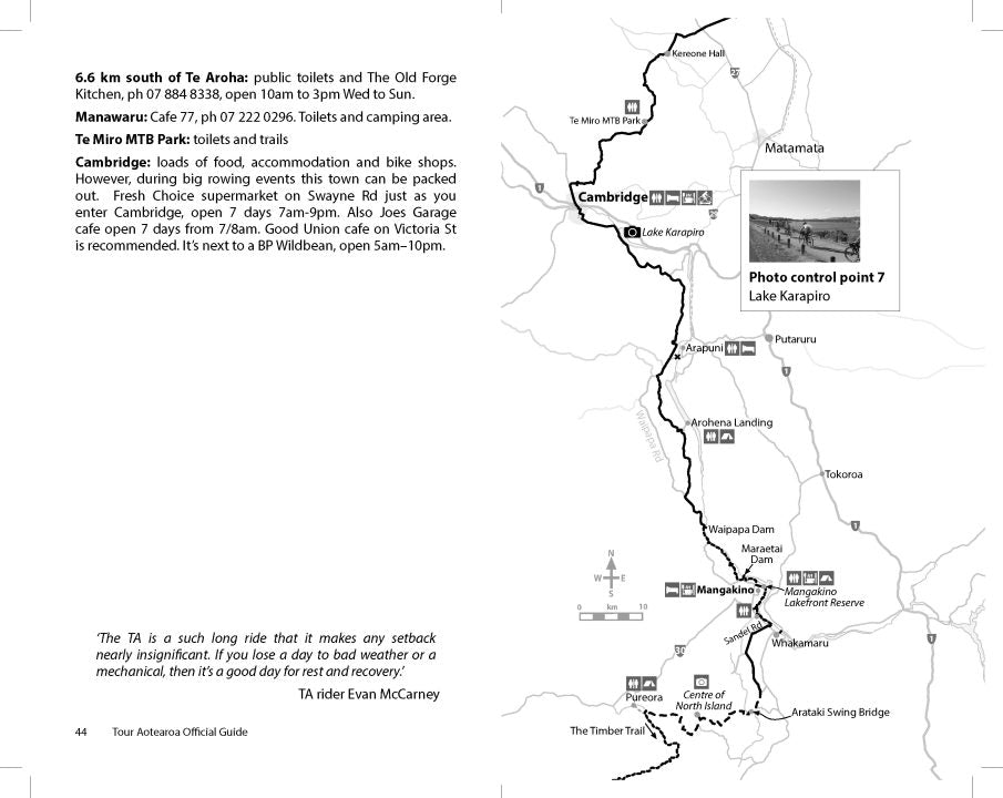 - Route changed between Te Aroha and Arapuni; now goes via Cambridge via Waikato River Trail (Great Ride) to avoid Highway 29 and Arapuni bridge closure