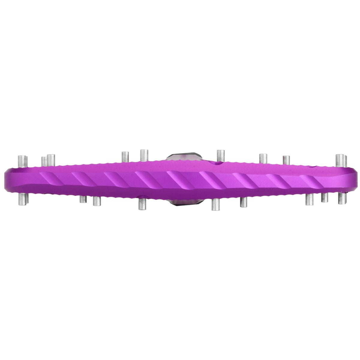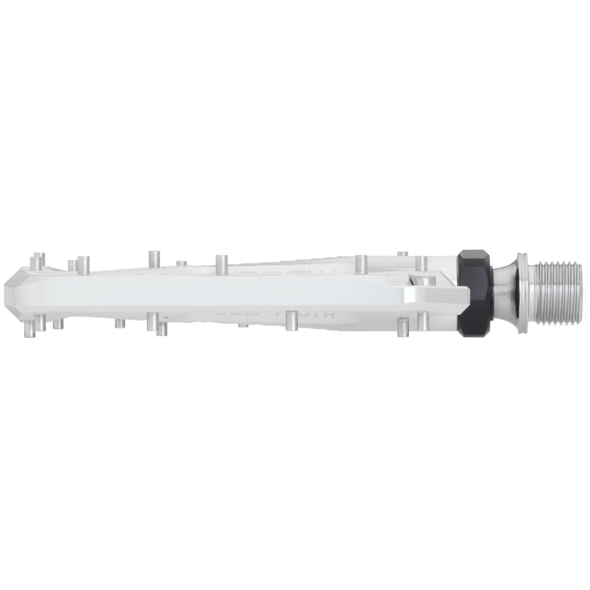 Each side of the pedal has 12 stainless steel rear-loading 4.5mm pins for loads of traction. An additional six 4.5mm pins ship with the pedal. Shorter 3mm pins are available as replacement parts to customize the convexity of the pedal; by installing shorter pins on the edges, the convex profile is emphasized.